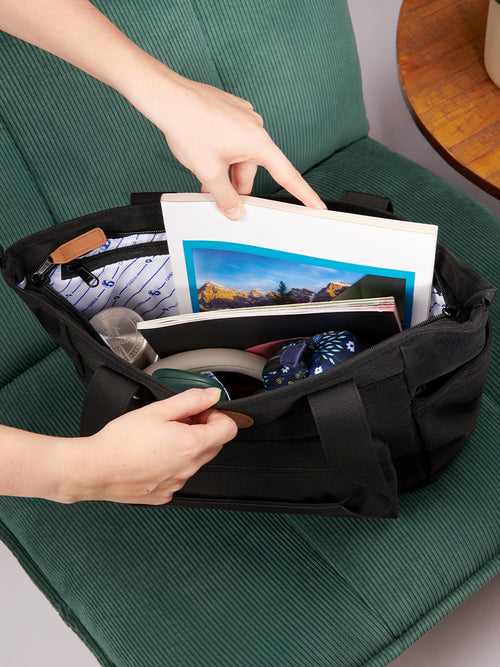 This tote bag is designed to adapt to all your needs: